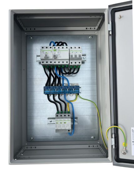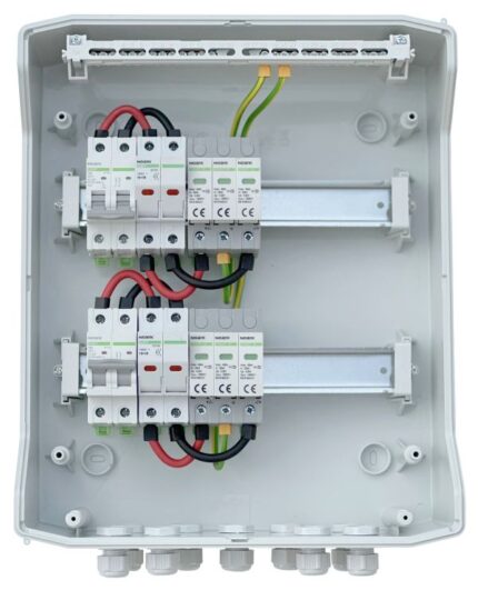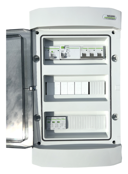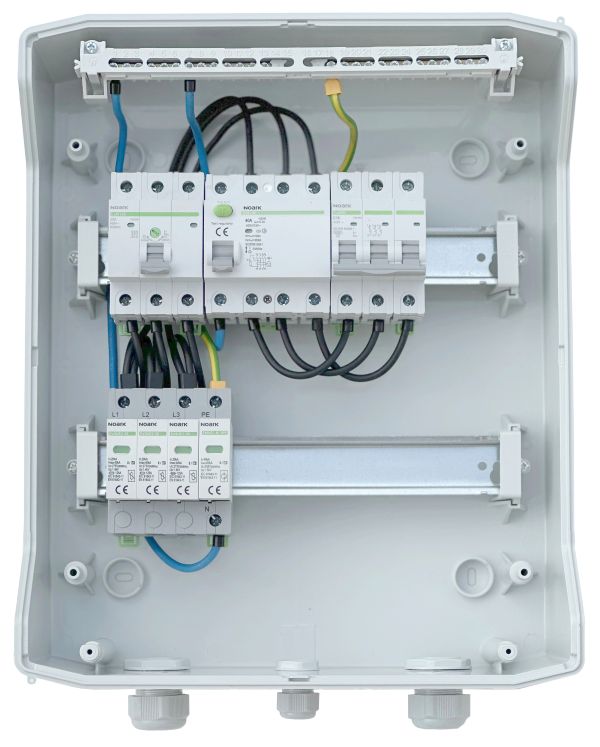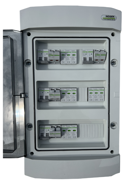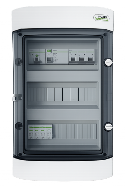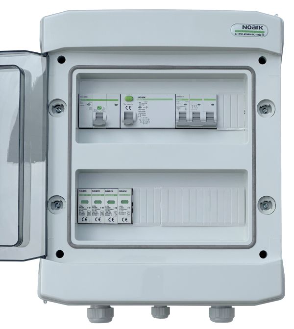 AC zaštitni orman izradjen u potpunosti od komponenti renomiranog proizvodjača elektronskih komponenti NOARK Electric, zadovoljava potrebe instalacije solarnih elektrana do 10.8 kW snage. Visok kvalitet i pouzdanost komponenti ugradjenih u ovaj orman potvrdjuje i produžena garancija od 5 godina. Namenjen je za zidnu montažu. Stepen zaštite IP65 dok je nazivni radni napon 400 V AC, 1500 V DC. Na raspolaganju je još 10 slobodnih modula.