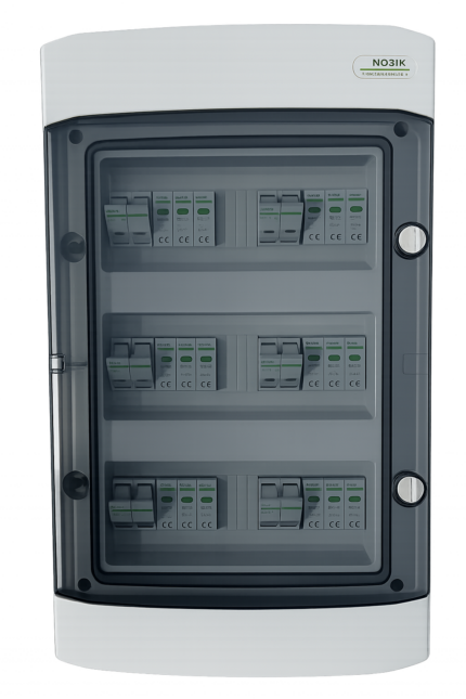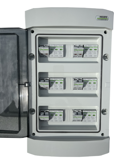 AC zaštitni orman izradjen u potpunosti od komponenti renomiranog proizvodjača elektronskih komponenti NOARK Electric, zadovoljava potrebe instalacije solarnih elektrana do 10.8 kW snage. Visok kvalitet i pouzdanost komponenti ugradjenih u ovaj orman potvrdjuje i produžena garancija od 5 godina. Namenjen je za zidnu montažu. Stepen zaštite IP65 dok je nazivni radni napon 400 V AC, 1500 V DC. Na raspolaganju je još 10 slobodnih modula.