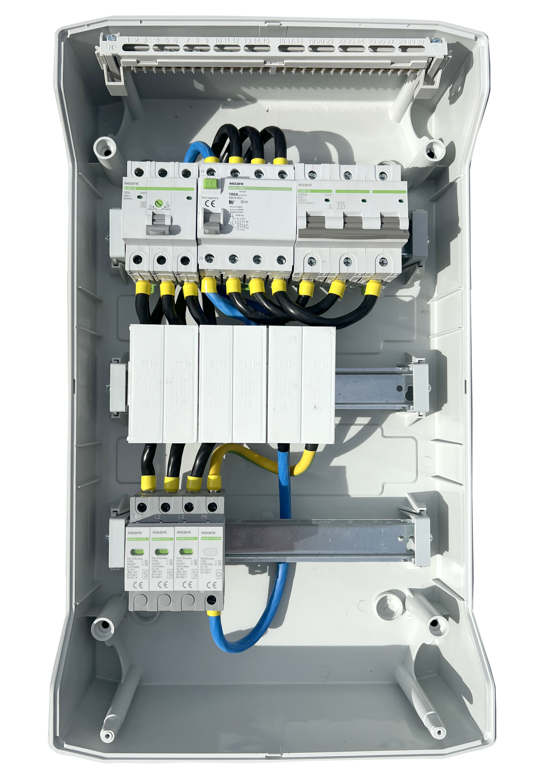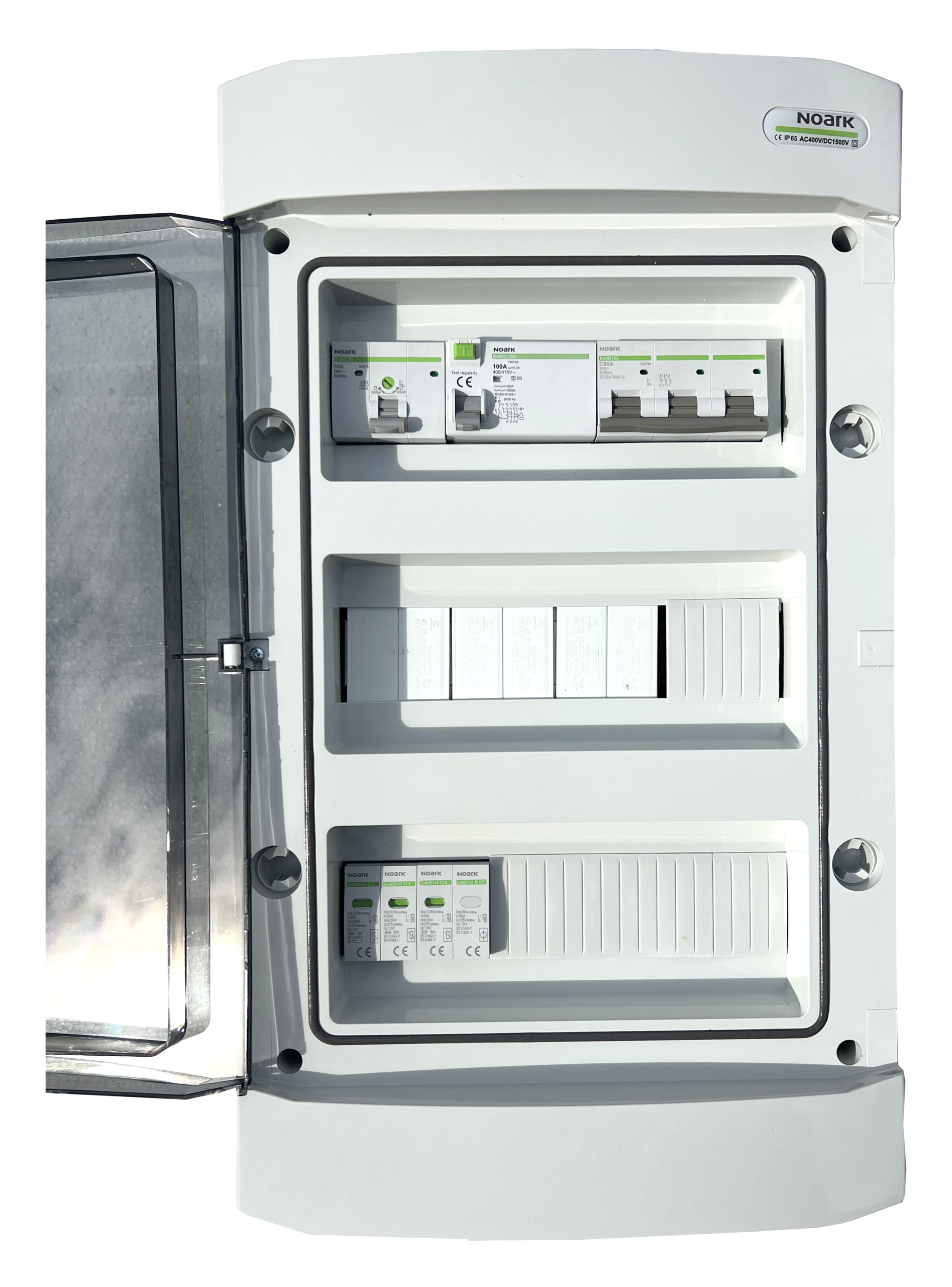 AC zaštitni orman izradjen u potpunosti od komponenti renomiranog proizvodjača elektronskih komponenti NOARK Electric, zadovoljava potrebe instalacije solarnih elektrana do 50 kW snage. Visok kvalitet i pouzdanost komponenti ugradjenih u ovaj orman potvrdjuje i produžena garancija od 5 godina. Namenjen je za zidnu montažu. Stepen zaštite IP65 dok je nazivni radni napon 400 V AC, 1500 V DC.