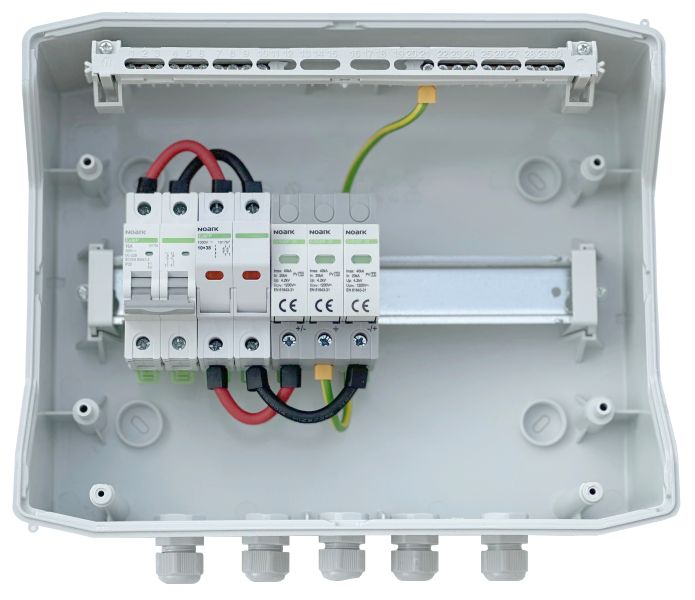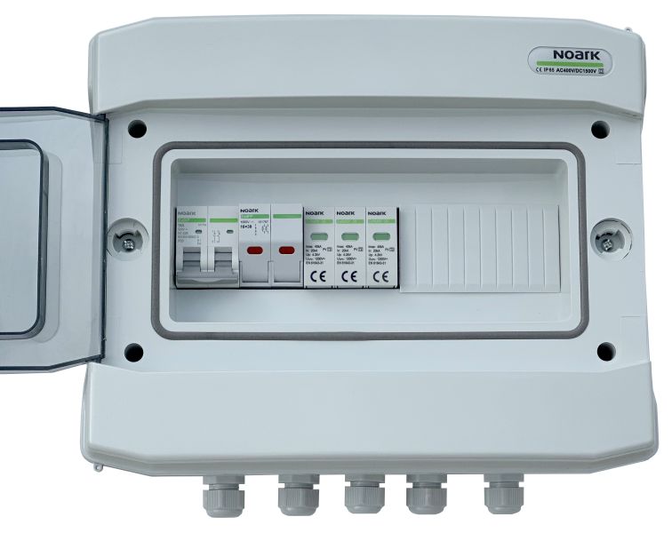 DC zaštitni orman izradjen u potpunosti od komponenti renomiranog proizvodjača elektronskih komponenti NOARK Electric, zadovoljava potrebe instalacije solarnih elektrana sa jednim stringom. Opremljen jedodatnim rastavljačem snage širine 2 modula, 16A.Visok kvalitet i pouzdanost komponenti ugradjenih u ovaj orman potvrdjuje i produžena garancija od 5 godina. Namenjen je za zidnu montažu. Stepen zaštite IP65 dok je nazivni radni napon 400 V AC, 1500 V DC. Na raspolaganju je još 7 slobodnih modula.