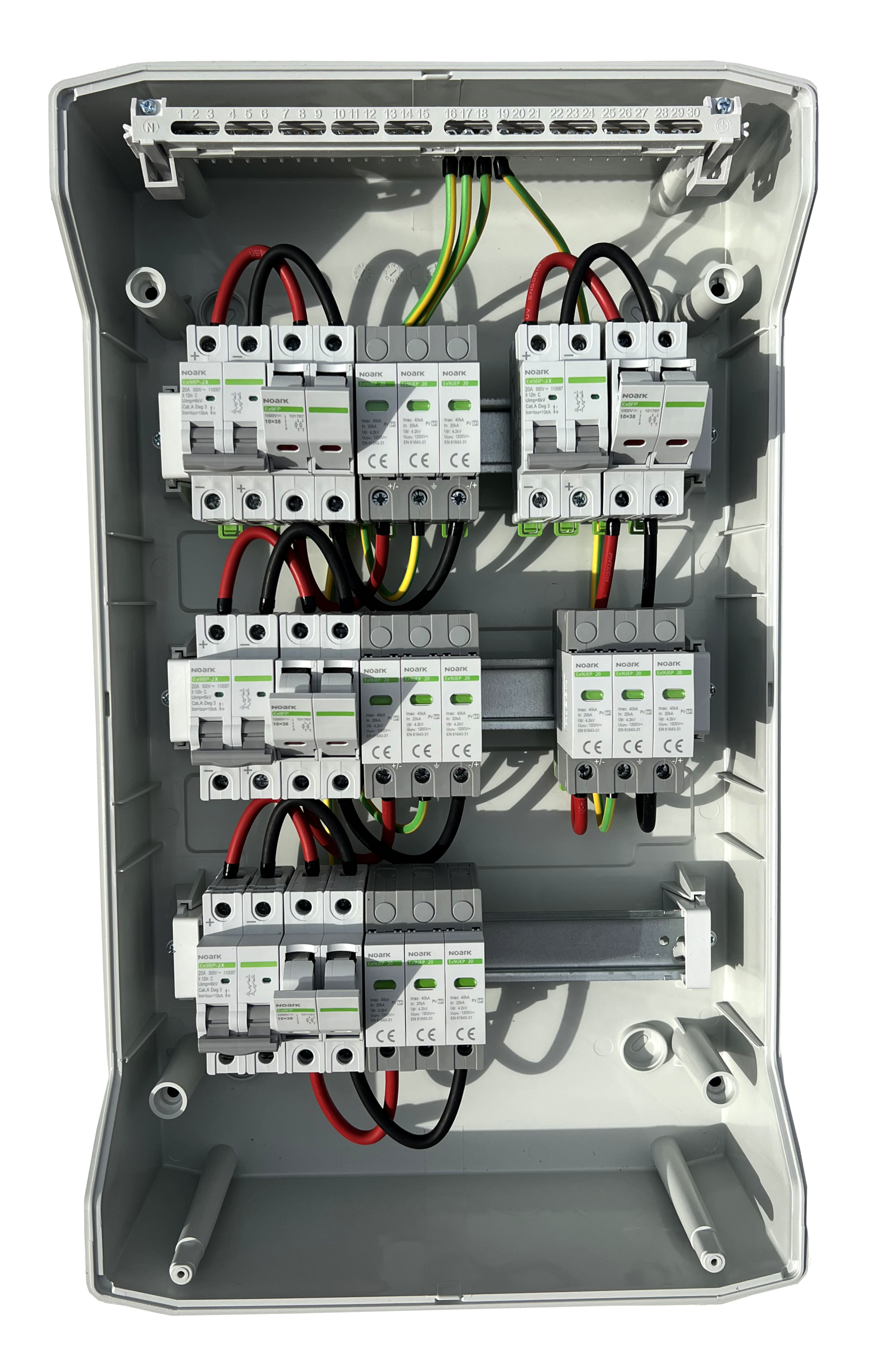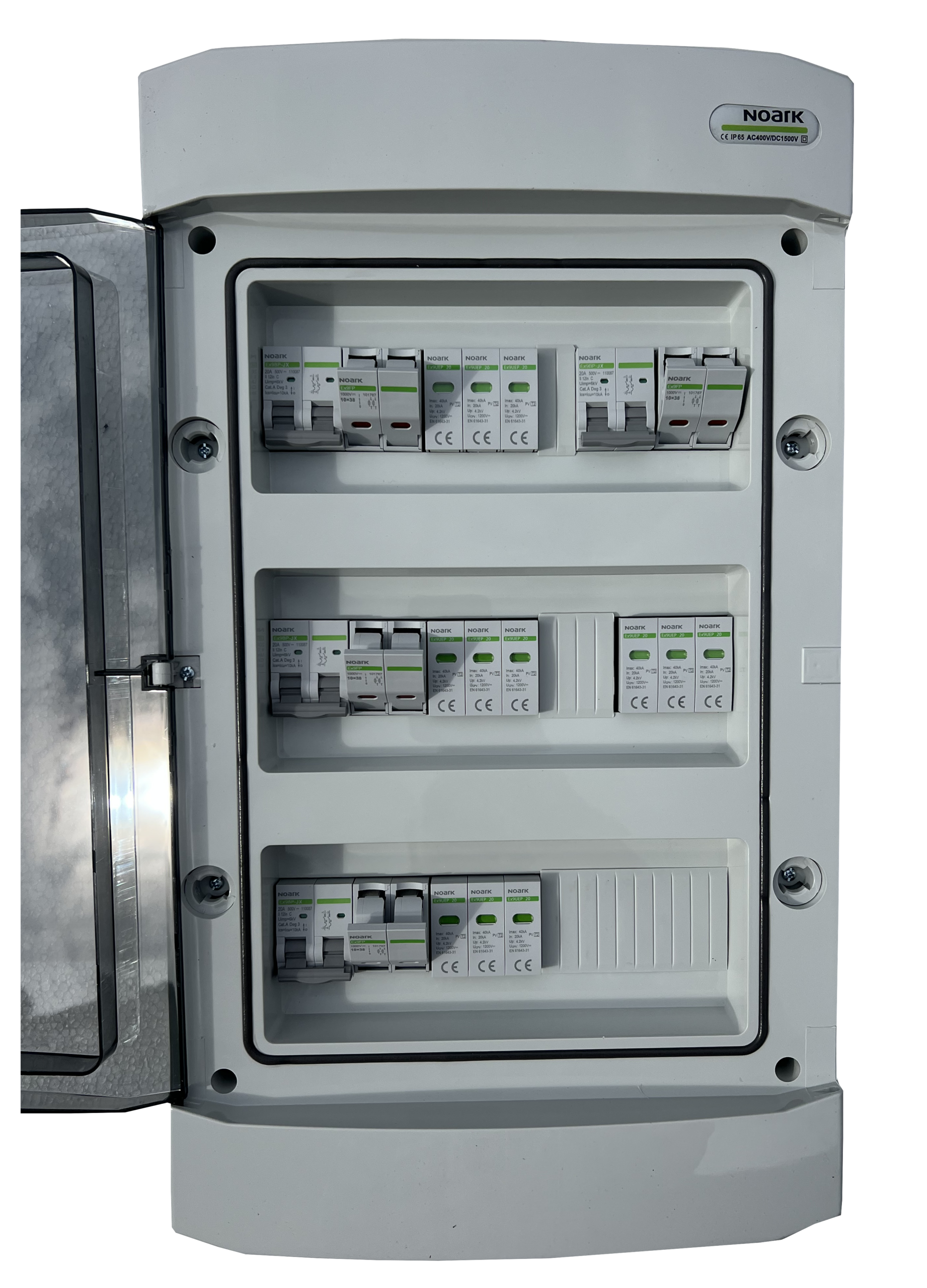 DC zaštitni orman izradjen u potpunosti od komponenti renomiranog proizvodjača elektronskih komponenti NOARK Electric, zadovoljava potrebe instalacije solarnih elektrana cetiri stringa. Opremljen jedodatnim rastavljačem snage širine 2 modula, 16A.Visok kvalitet i pouzdanost komponenti ugradjenih u ovaj orman potvrdjuje i produžena garancija od 5 godina. Namenjen je za zidnu montažu. Stepen zaštite IP65 dok je nazivni radni napon 400 V AC, 1500 V DC.