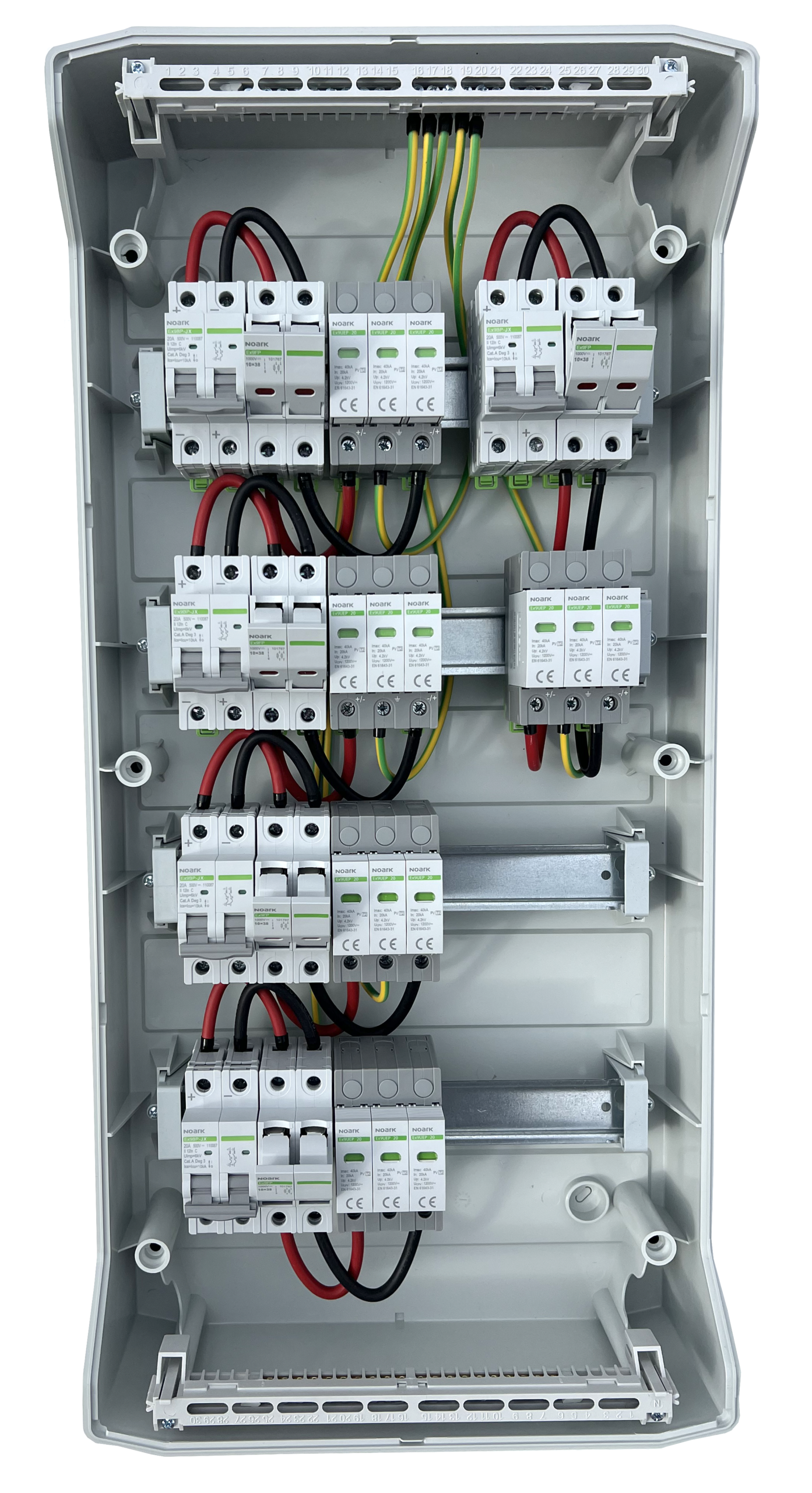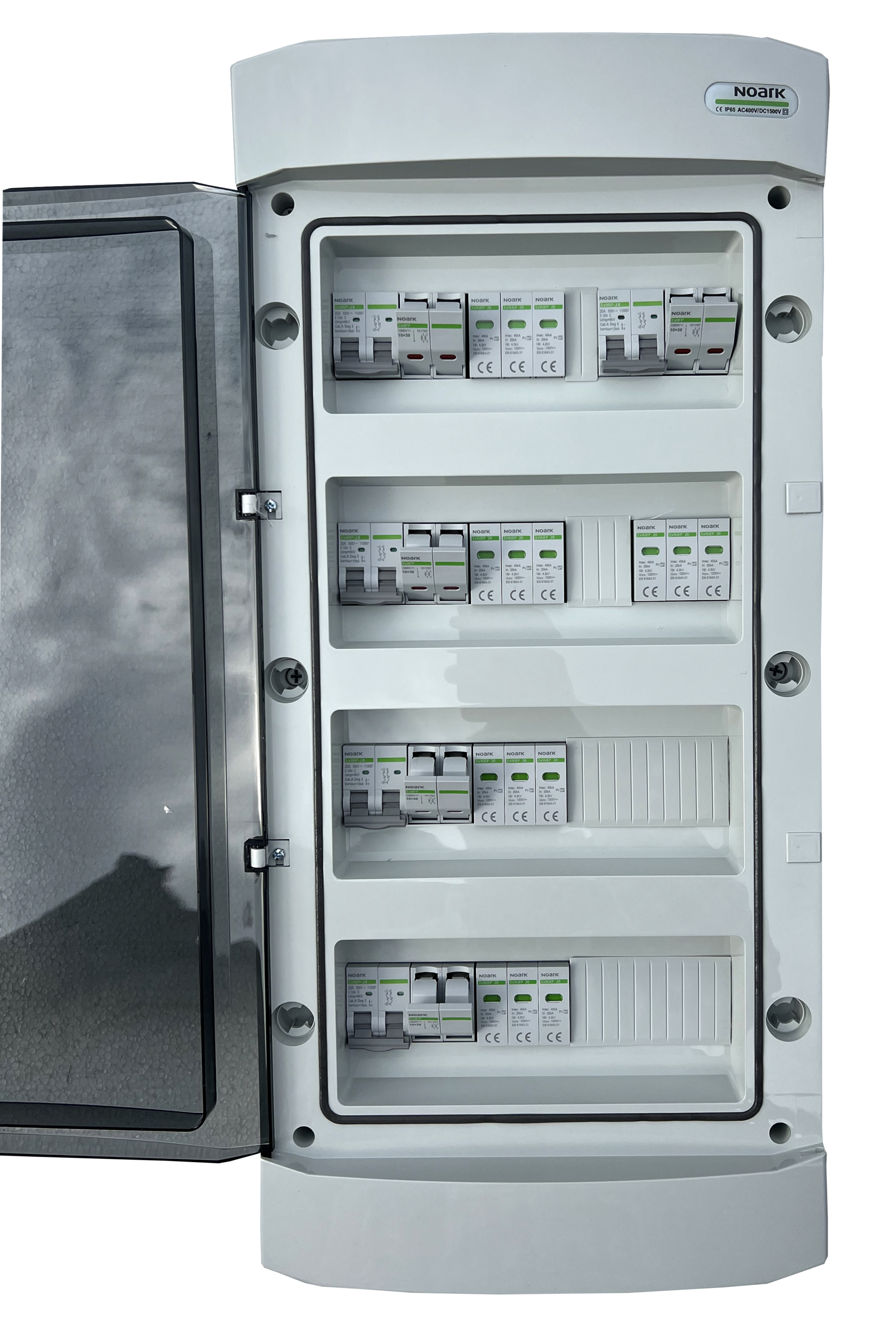 DC zaštitni orman izradjen u potpunosti od komponenti renomiranog proizvodjača elektronskih komponenti NOARK Electric, zadovoljava potrebe instalacije solarnih elektrana sa jPet stringa. Opremljen jedodatnim rastavljačem snage širine 2 modula, 16A.Visok kvalitet i pouzdanost komponenti ugradjenih u ovaj orman potvrdjuje i produžena garancija od 5 godina. Namenjen je za zidnu montažu. Stepen zaštite IP65 dok je nazivni radni napon 400 V AC, 1500 V DC.