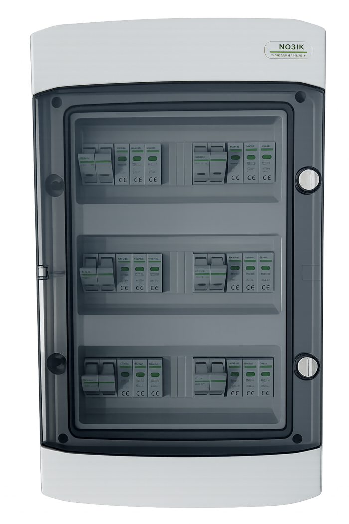DC zaštitni orman izradjen u potpunosti od komponenti renomiranog proizvodjača elektronskih komponenti NOARK Electric, zadovoljava potrebe instalacije solarnih elektrana sa sest stringa. Visok kvalitet i pouzdanost komponenti ugradjenih u ovaj orman potvrdjuje i produžena garancija od 5 godina. Namenjen je za zidnu montažu. Stepen zaštite IP65 dok je nazivni radni napon 400 V AC, 1500 V DC.